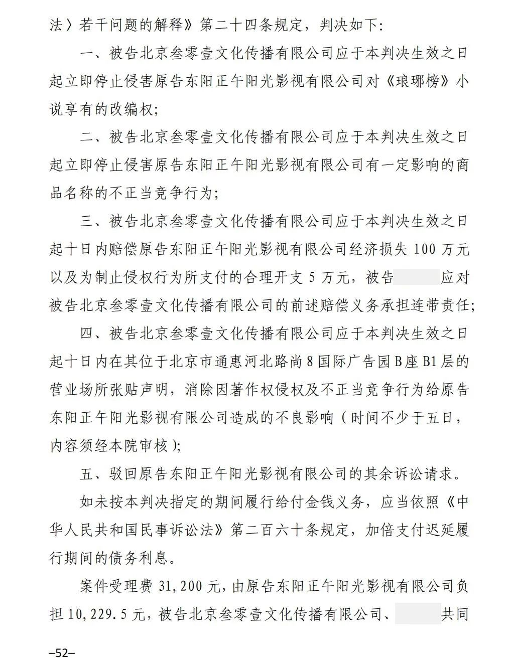 近日,“正午陽光”訴“301密室”著作權(quán)侵權(quán)及不正當(dāng)競(jìng)爭(zhēng)案件在上海市楊浦區(qū)人民法院宣判,法院判決被告立即停止對(duì)《瑯琊榜》作品的著作權(quán)侵權(quán)行為、立即停止使用“瑯琊榜”名稱的不正當(dāng)競(jìng)爭(zhēng)行為,同時(shí)判令被告賠償原告經(jīng)濟(jì)損失及合理費(fèi)用共計(jì)人民幣105萬元、并在其經(jīng)營場(chǎng)所張貼聲明消除影響。該判決現(xiàn)已生效。