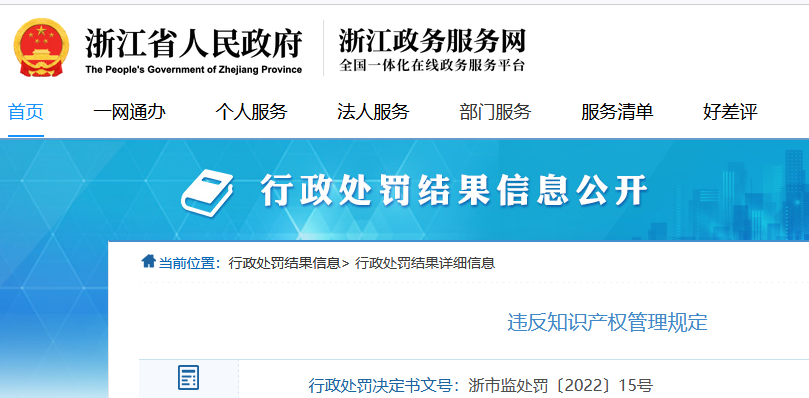 行政處罰決定書(shū)文號(hào):浙市監(jiān)處罰〔2022〕15號(hào);