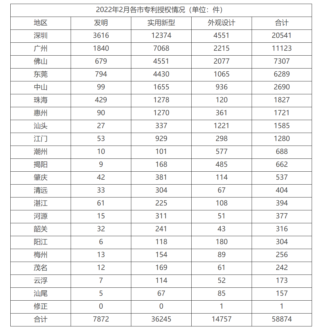 廣東發(fā)布2022年1、2月各市專利授權(quán)情況