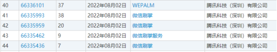 據(jù)商標(biāo)局官網(wǎng)顯示,騰訊科技(深圳)有限公司在2022年8月2號,分別注冊了“WEPALM”“微信刷掌”“微信刷掌服務(wù)”等多枚商標(biāo),目前都處于等待受理中。看來是做好了要大力推行的準(zhǔn)備。不得不說,大廠就是大廠,十分懂得兵馬未動,商標(biāo)先行的道理。