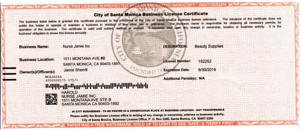 首先,利用第三十二條,被異議人損害異議人在先商標(biāo)權(quán),異議人商號(hào)“Nurse Jamie Inc”與被異議商標(biāo)相同,自異議人成立以來(lái),一直將“nurse jamie(杰米護(hù)士)”作為企業(yè)商號(hào)作為企業(yè)的主體標(biāo)識(shí),其營(yíng)業(yè)執(zhí)照申請(qǐng)日期早于被異議商標(biāo)申請(qǐng)日期。