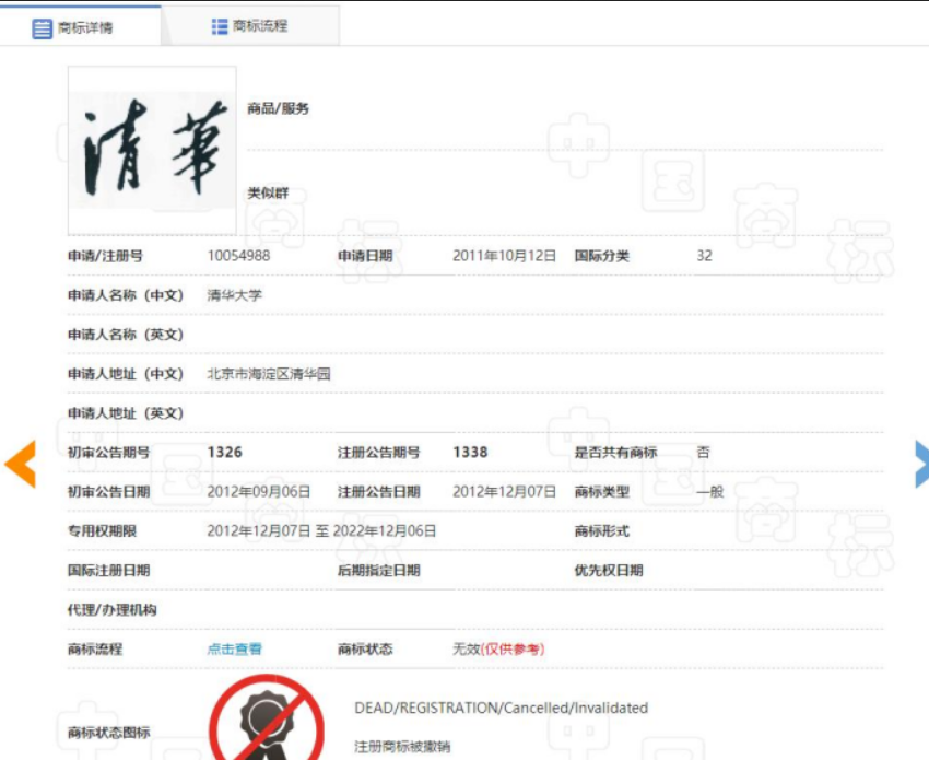 比如,清華大學(xué)注冊的32類“清華”商標(biāo)就被撤銷了,原因也同樣是“商標(biāo)連續(xù)三年不使用”!