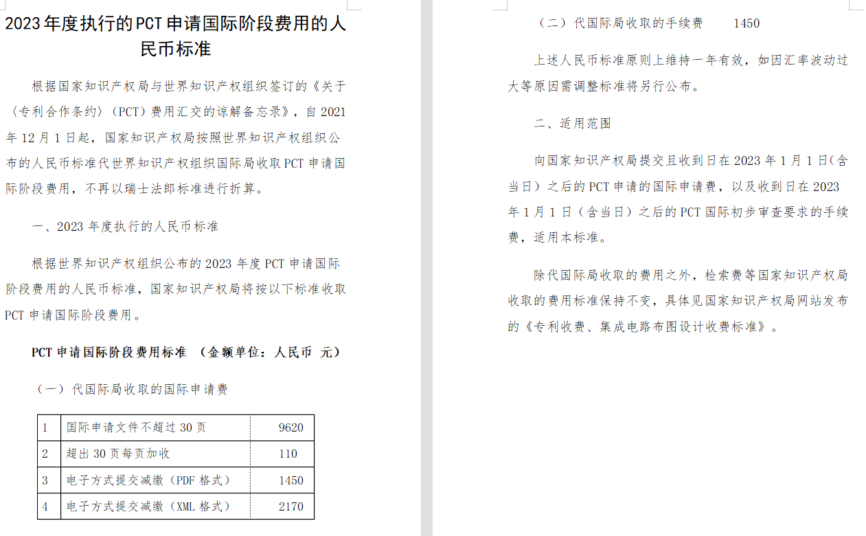 來了!2023年度執(zhí)行的PCT申請國際階段費用的人民幣標準