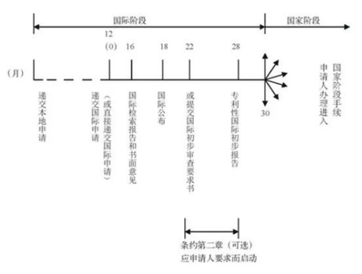 PCT申請分為國際階段和國家階段兩個階段,申請的提出、國際檢索報告和書面意見以及國際公布都是在國際階段完成的,如果申請人要求,國際階段還包括國際初步審查程序。申請人在首次提交專利申請之后的30個月內(nèi)辦理國際專利申請進入到國家階段,是否授予專利權(quán)的工作由國家階段被指定的國家或地區(qū)的專利局所決定。