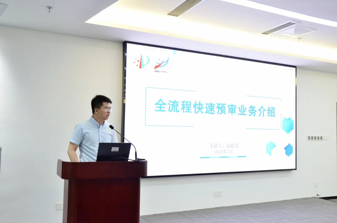 中國(深圳) 知識產(chǎn)權(quán)保護(hù)中心審查確權(quán)部副部長溫必劍 進(jìn)行《全流程快速預(yù)審業(yè)務(wù)介紹》主題分享