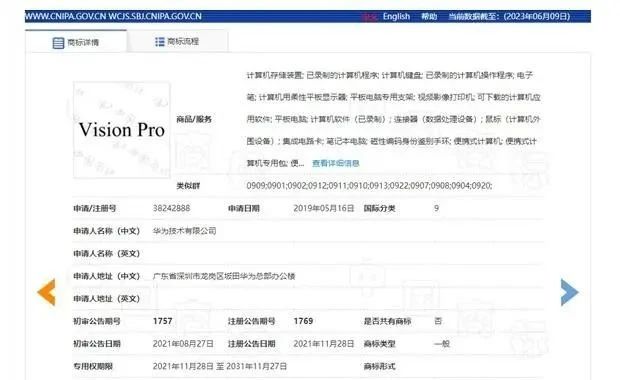 蘋果Vision Pro剛公布就要改名?商標(biāo)在華為手里已4年