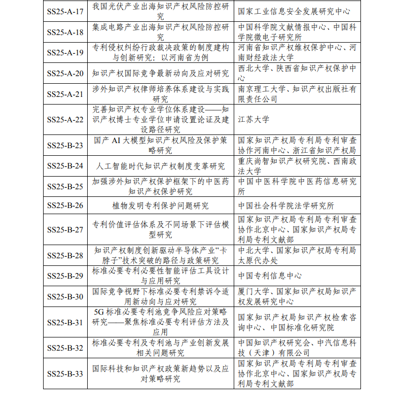 附件:2025年度國家知識產(chǎn)權(quán)局軟科學(xué)研究項目立項名單